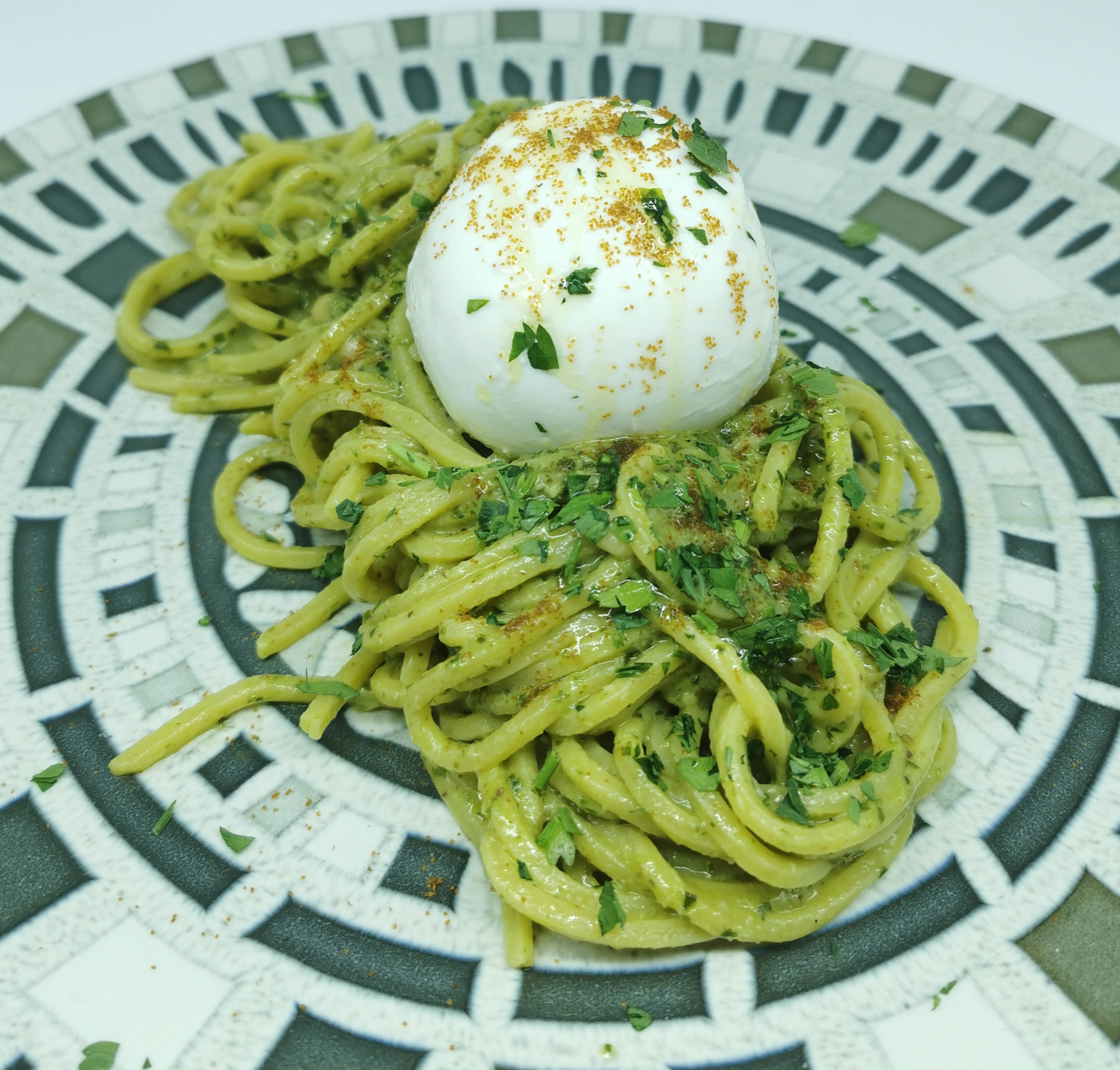 Carne picada, bechamel, tomates y parmesano